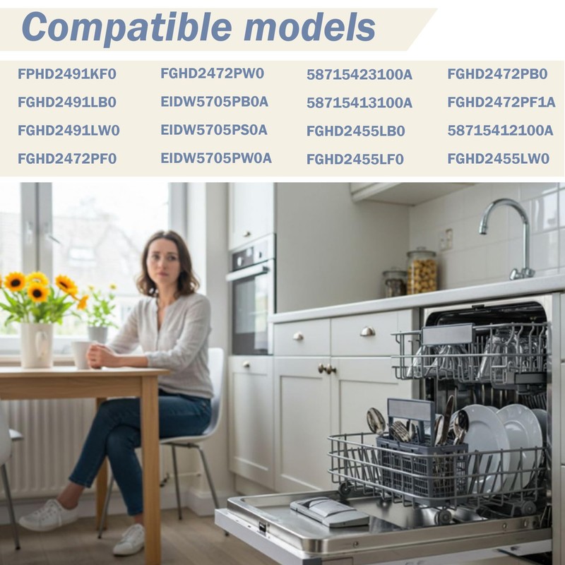 - Compatible with, but not limited to, the following models 58715412100A, 58715423100A, 58715413100A, FGHD2455LB0, FGHD2455LF0, FGHD2455LW0, FGHD2472PB0, FGHD2491KF0, FGHD2491LB0. FGHD2491LW0, FGHD2472PF0, FGHD2472PF1A, FGHD2472PW0, EIDW5705PB0A, EIDW5705PS0A, EIDW5705PW0A.