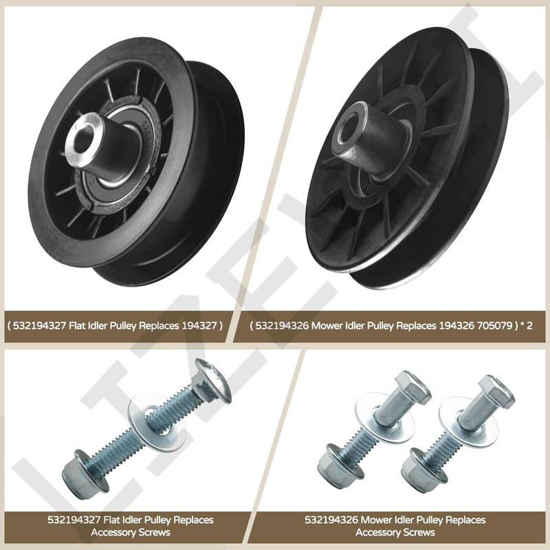532194326 V-Groove Idler Pulley and 532194327 Flat Idler Pulley Kit Compatible with Husqvarna Riding Lawn Mowers, Replaces 280-6630, 194327, 705080, 13179, 705079, 194326, 280-6590, 194326