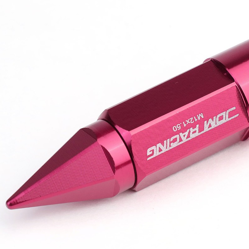 53mm Aluminum M12 x 1.5 6-Point 23mm OD Pink 20 Rim Lug Nuts with 30mm Caps Set Key, Pink
