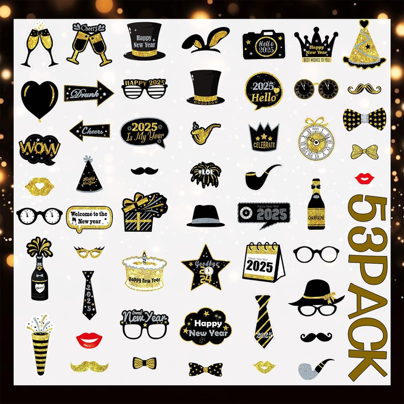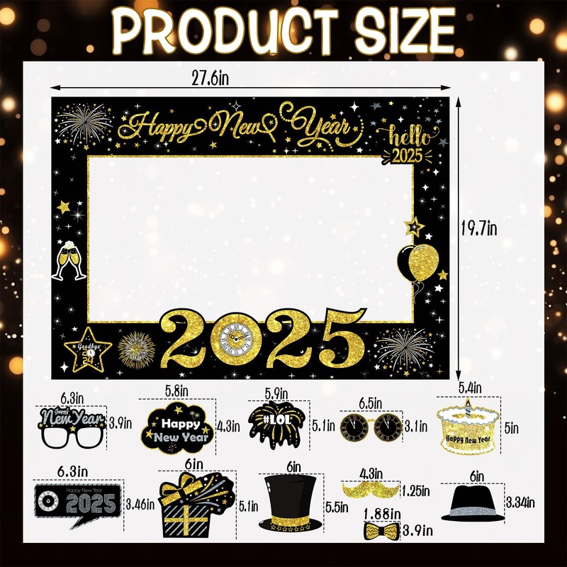 - 2025 New Years Eve Photo Booth Props: Package includes 1 x New Year photo frame props 2025, 53 x New Year's Eve party paper photo booth Props. These party supplies are perfect for New Year's Eve parties, make memories with fun 2025 New Year's Eve photo booth props