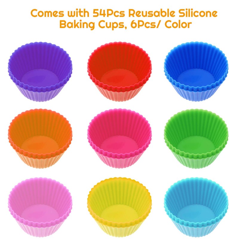 54 Pack Silicone Muffin Cups, Selizo Silicone Cupcake Baking Cups Reusable Mu...