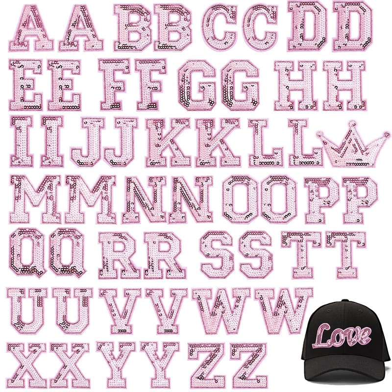 54 Pieces Iron on Sequin Letters Patches Alphabet Patches Iron on Appliques Love Design Sew on Patches Glitter Hotfix Patches for Bag Shoes DIY Craft Supplies(Pink)