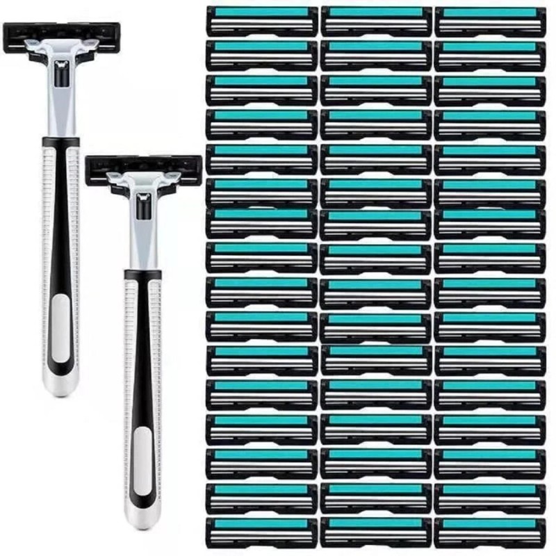 54 Twin Stainless Steel Blades Shaving Disposable Razors with 2 Handles for Men