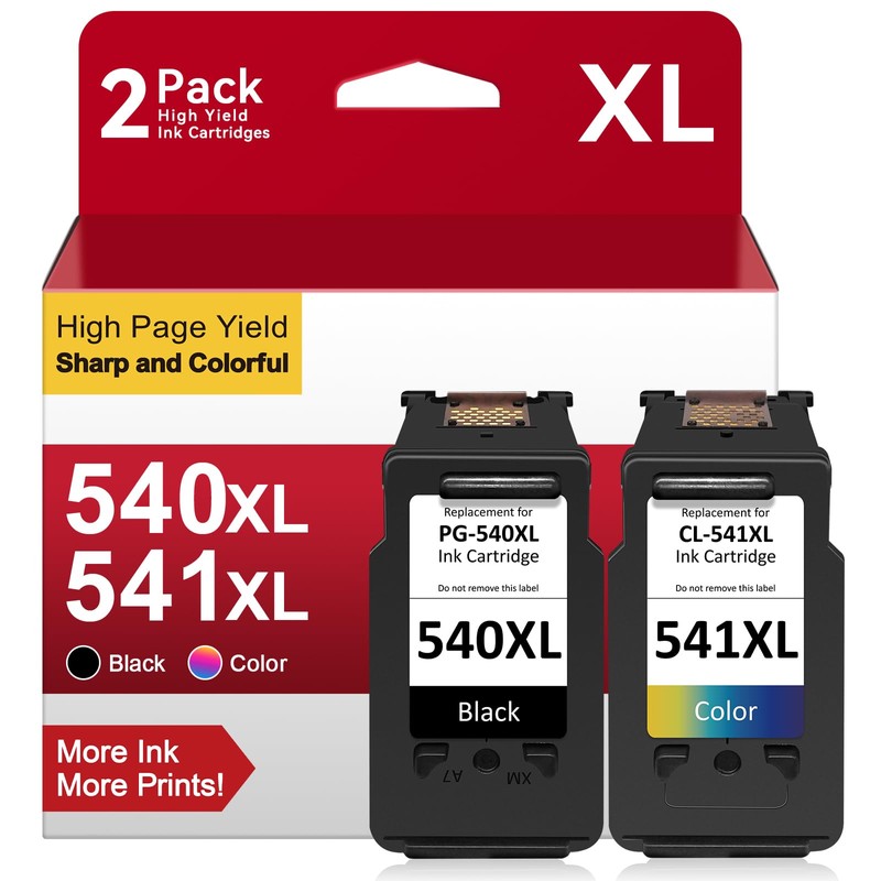 - Package Content: 2 packs of 540XL 541XL ink cartridges replacement for canon 540 and 541 ink cartridges, 1 x 540XL Black ink cartridge, 1 x 541XL colour ink cartridge (Lxprinton printer ink 540 541 XL are not OEM products but work well with canon 540 541)