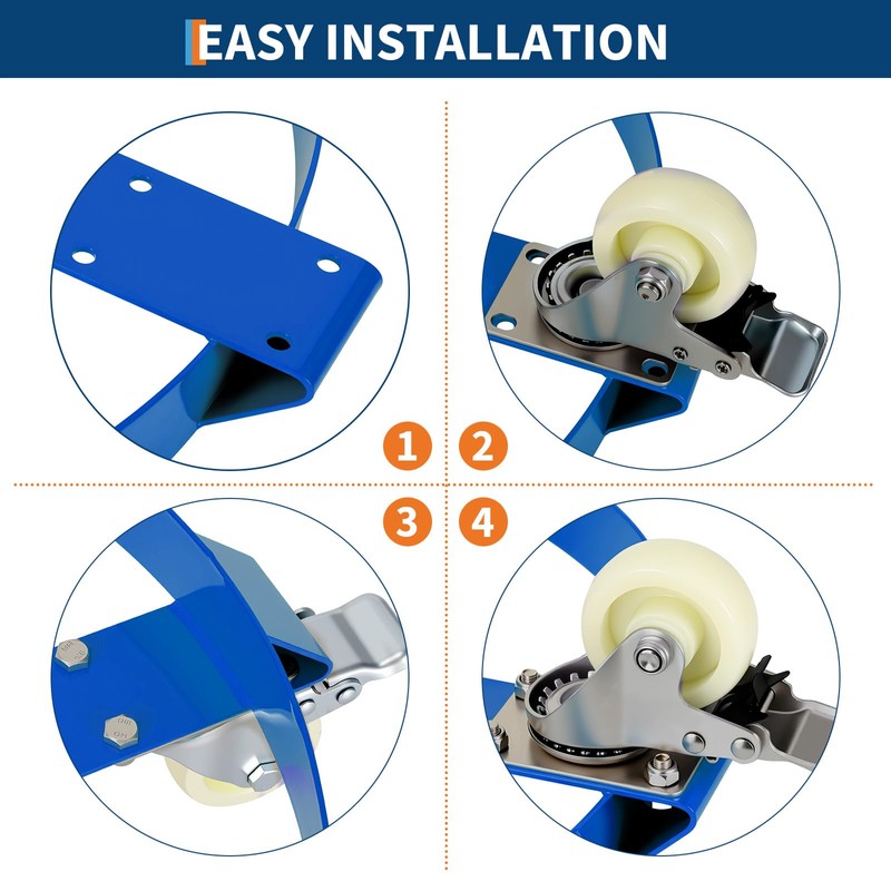 - [Smooth Mobility] Equipped With Four Swivel Universal Wheels, Two Of Which Have Brakes, You Can Easily Adjust The Direction And Brake The Drum Cart, Making It Easy To Maneuver Even In Tight Spaces.