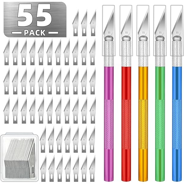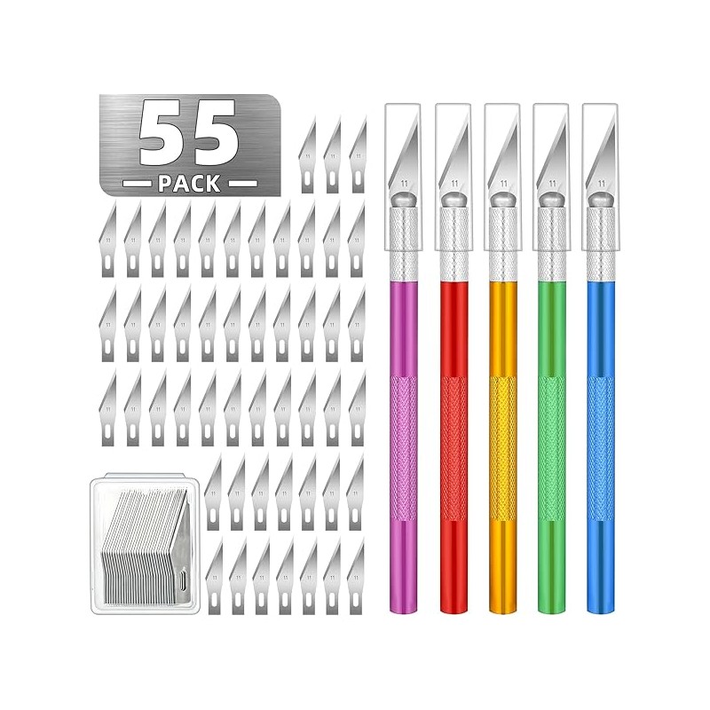 55 Pack Exacto Knife, Hobby Knife Set with 5 Craft Knives and 50 Precision Knife Blades(#11) for Art,Scrapbooking,Carving, DIY, Cutting, Stenciling by EGYPAMID