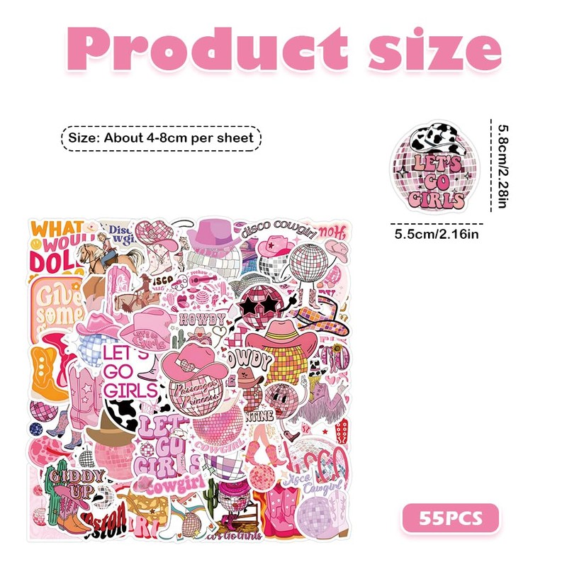Package included:55-Pack Pink Disco Cowgirl Stickers