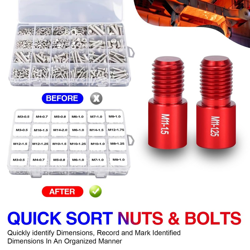 - 【Three Reading Methods】This bolt and nut identifier gauge offers three distinct ways to read sizes clearly—through engraved markings on the gauges, easy-to-read stickers on the foam storage, and color coding (blue for standard sizes and red for metric), ensuring you have multiple options at hand.