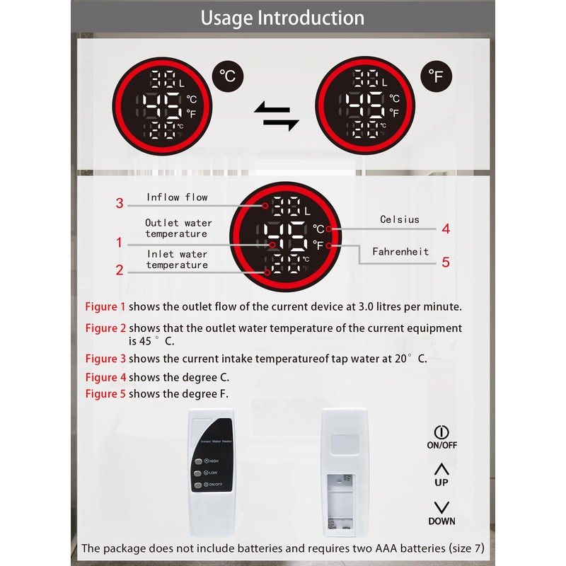 • Hot Water Control: High water flow results in low temperature, low water flow results in high temperature; Without turning on the water flow, the water heater without a water tank cannot start