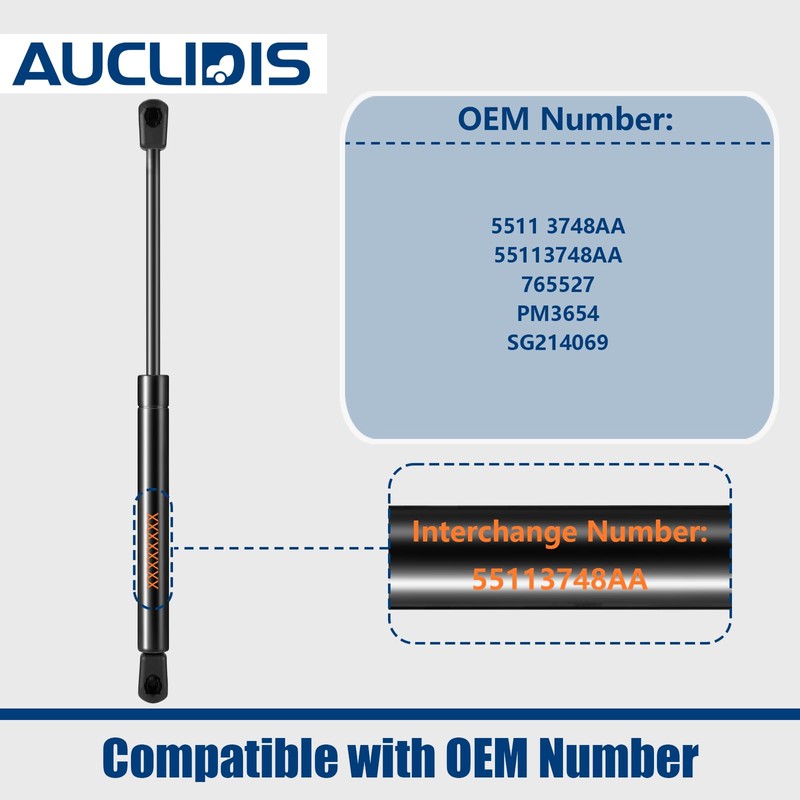 - 【Interchange Number】Compatible with OEM part numbers 5511 3748AA, 55113748AA, 765527, PM3654, SG214069, accurately replicating OEM gas spring specifications. Direct replacement for old components requiring no modifications.