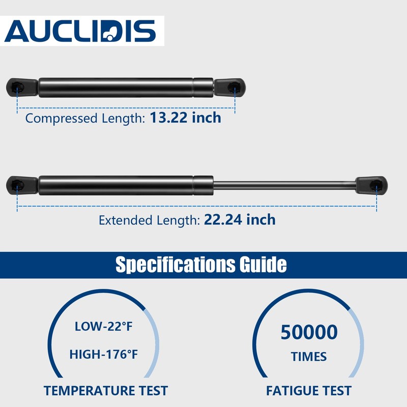 - 【Specifications Guide】The extended length of the gas strut measured from ball center to ball center is 22.24 inch, compressed length measured from ball center to ball center is 13.22 inch, stroke 9.02 inch.