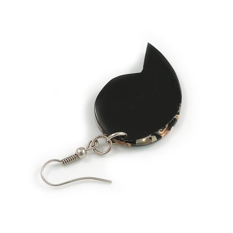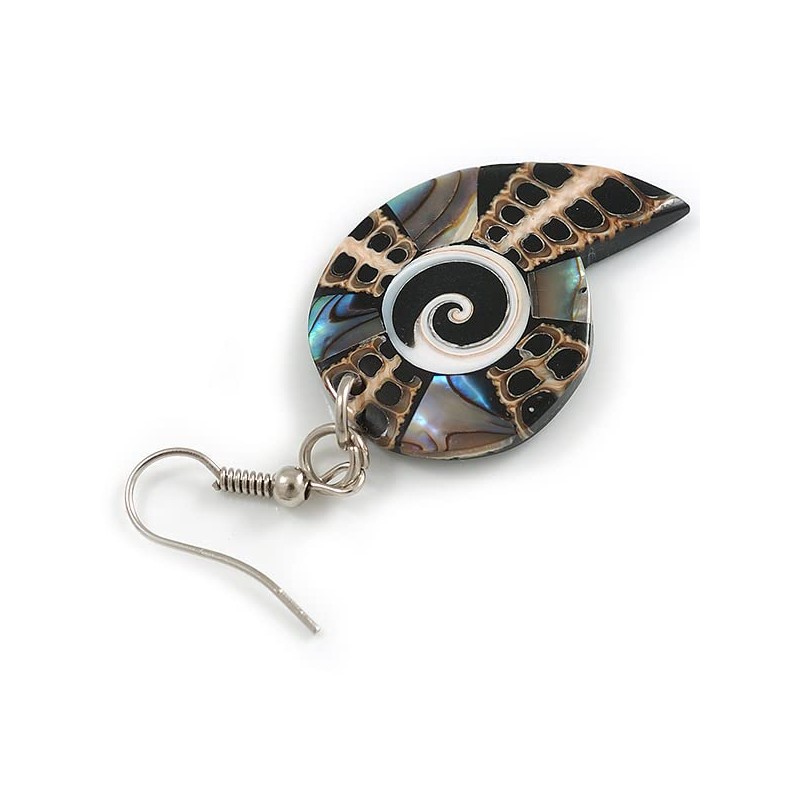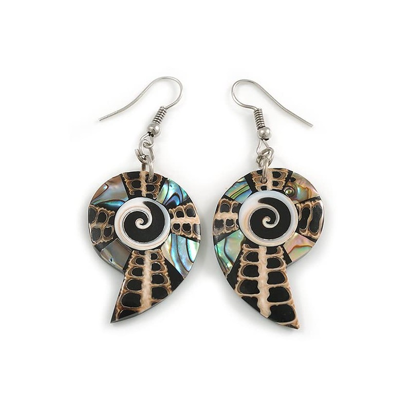 55mm L/Beige/Black/Brown/Abalone Shell Shape Sea Shell Earrings/Handmade/Slight Variation In Colour/Natural Irregularities