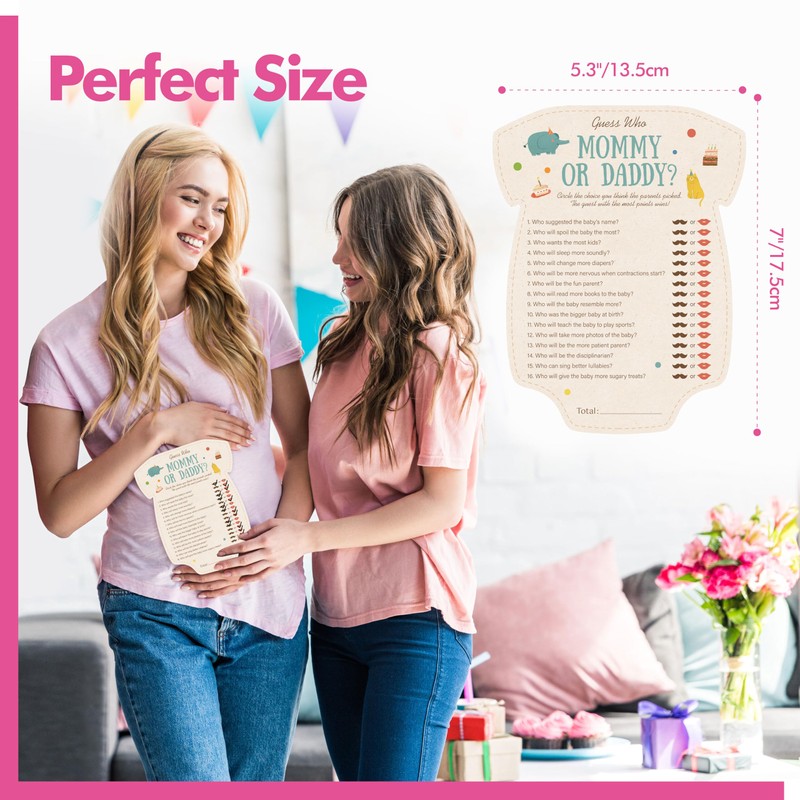 - Delicate Design: The "Guess Who Mommy or Daddy" game includes a mix of thoughtful and funny questions that will keep your guests entertained. From discovering who’s more likely to change diapers to who sleep more soundly, the questions spark fun discussions and reveal adorable tidbits about the parents-to-be.