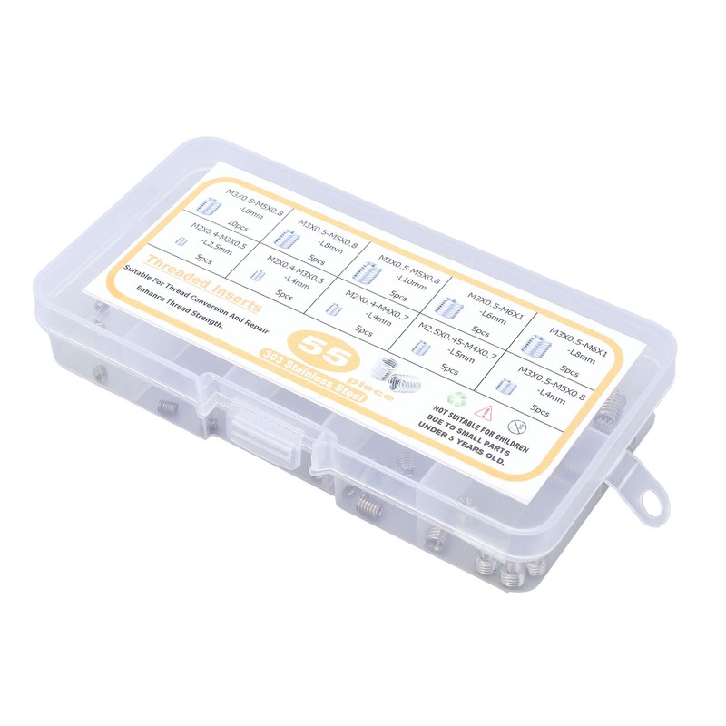 55Pcs Insert Nut Threaded M2 M2.5 M3 Stainless Steel Fastener Assortment for Repair
