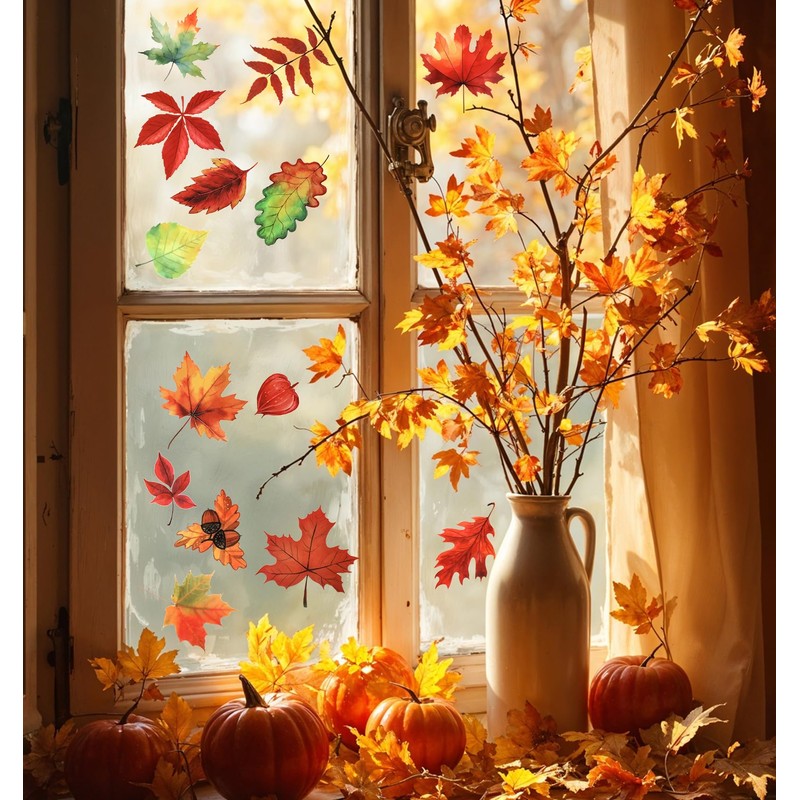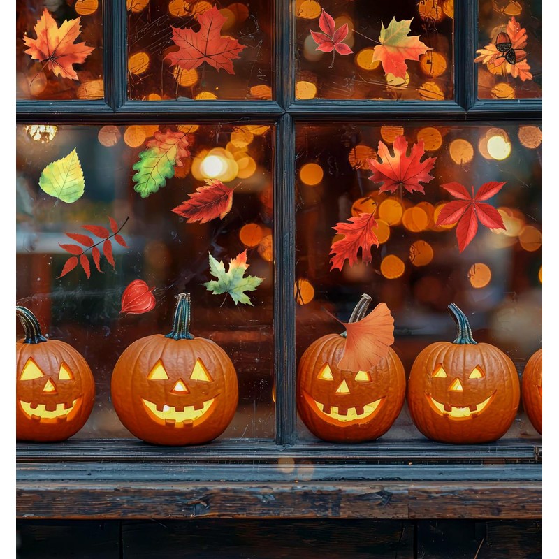 - Autumn Window Clings - Our fall window clings feature vibrant maple leaves and pine cones, adding a festive touch to your home while enhancing the autumn atmosphere