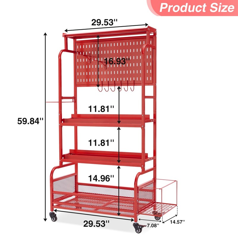 56'' Taller Home Gym Storage Organizer, Yoga Mat Storage Rack with Hanging Board, Exercise Workout Equipment Storage Stand for Home Gym, Dumbbell Holder Kettlebell Rack with Wheels and Hooks (Red)