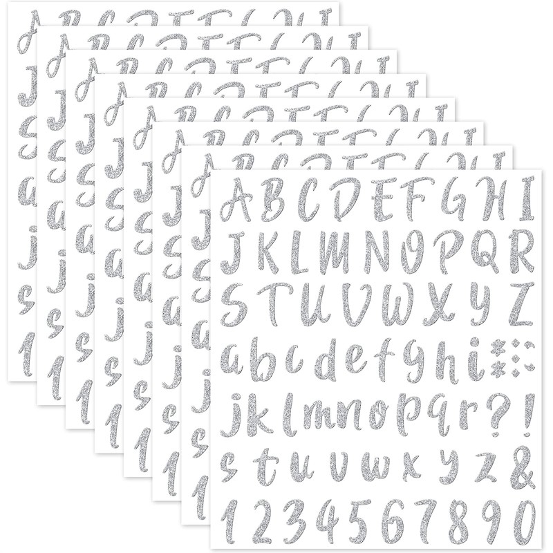 576 Pieces 8 Sheets Self Adhesive Vinyl Letter Alphabet Number Stickers Mailbox Numbers Sticker, Decals for Classroom Decor, Sign, Door, Business, Address Number (Glitter Silver,1 Inch)