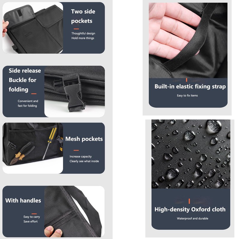 - Durable: Made of sturdy Oxford cloth, with reinforced high-wear areas, this car trunk organizer can hold heavy things.