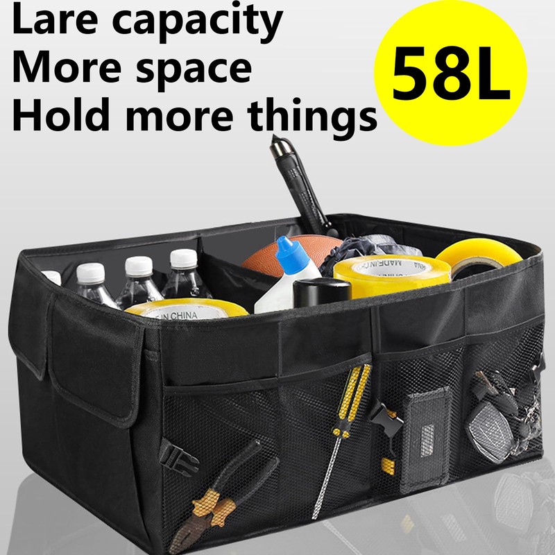 58L Car Trunk Organizer, Foldable SUV Organizer, Car Trunk Storage for SUVs & Sedans, 3 Large Compartments, 2 Side Pockets, 2 Mesh Pockets