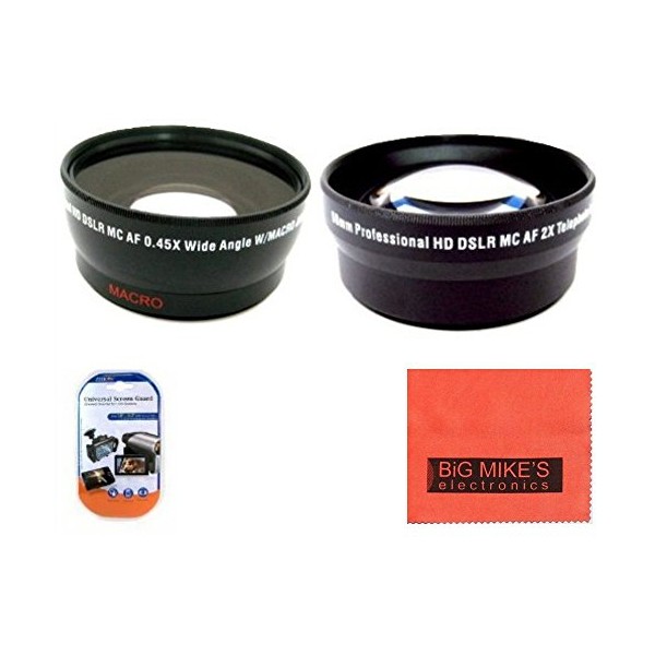 - New! deluxe 58mm 2x professional HD Telephoto + 58mm 0.43x Wide Angle Lens with Macro