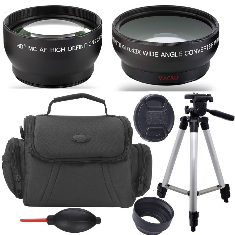 58MM Accessory Kit 0.43x Wide Angle + 2.2X Telephoto Lens + 50 inch Tripod & Large Bag, Rubber Lens Hood for for Canon EOS 70D 77D 80D 90D Rebel T8i T7 T7i T6i T6s DSLR Cameras