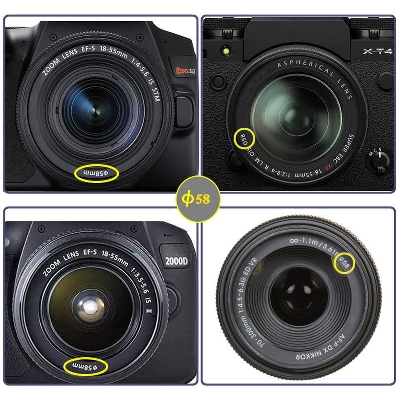 - 【Wide Compatibility】Perfect for all 58mm Digital Camera Lens. Please confirm the lens thread size before ordering.Don't get confused with focal distance.