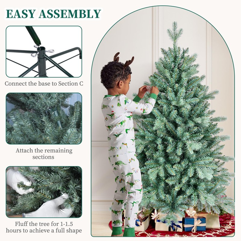 - Full and Durable Branches: With 1200 lush branches made from PE and PVC, this tree is flame-resistant, durable, and odor-free. It will maintain its fresh look year after year, adding lasting beauty to your holiday decorations