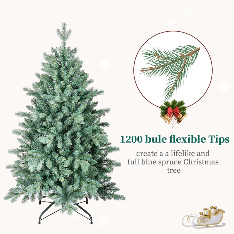 5FT Blue Spruce Artificial Christmas Tree - 1200 PE&PVC Tips - Metal Stand and Hinged Branches for Home, Party Decoration