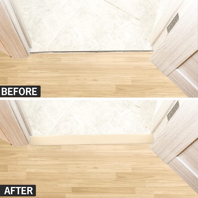 - 【EASY TO INSTALL】Adhesive is attached to the back of the product, which can be installed and pasted after tearing it off. There is no need to punch holes in the floor and do not damage the floor. You only need to clean the floor or wall and keep it dry, cut the right size, then tear off the tape, press the transition strip until it is stable on the floor or wall.