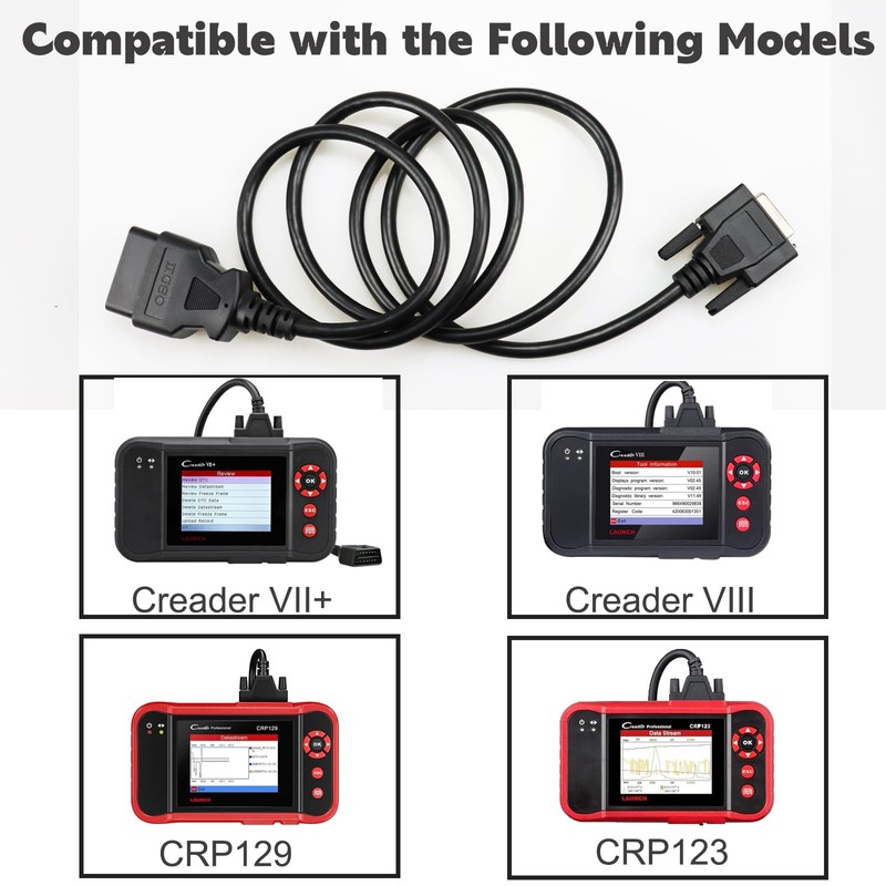 ➤X431 cable ONLY Compatible with launch CRP123,CRP129,Creader VII+ and Creader VIII. Will not work with other scanner models.