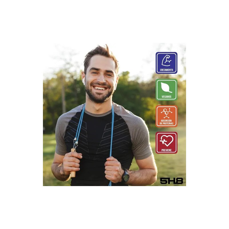 Descubre la potencia de la fórmula avanzada '5h8 L-Carnitina + Vitamina C', diseñada especialmente para hombres y mujeres que buscan optimizar su rendimiento físico. Este suplemento nutricional y deportivo, presentado en un práctico frasco con 120 cápsulas, es ideal para facilitar su consumo antes del entrenamiento. La L-Carnitina es conocida por su capacidad para ayudar en la quema de grasa, mientras que la Vitamina C contribuye a la protección celular y al fortalecimiento del sistema inmunológico. Este producto es libre de gluten y no contiene lactosa, lo que lo hace apto para diversas dietas. Se recomienda a partir de los 18 años y su uso es sencillo: solo una cápsula diaria con un alimento. Recuerda que este suplemento alimenticio no es un medicamento, pero puede ser un gran aliado en tu rutina de ejercicios. ¡Potencia tu entrenamiento con 5h8!