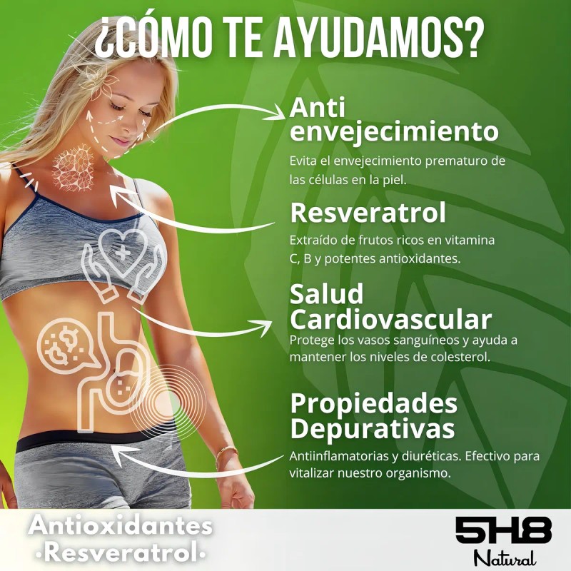 5H8 Resveratrol con Frutos Rojos y Biotina es un suplemento dietético de alta calidad, diseñado para: