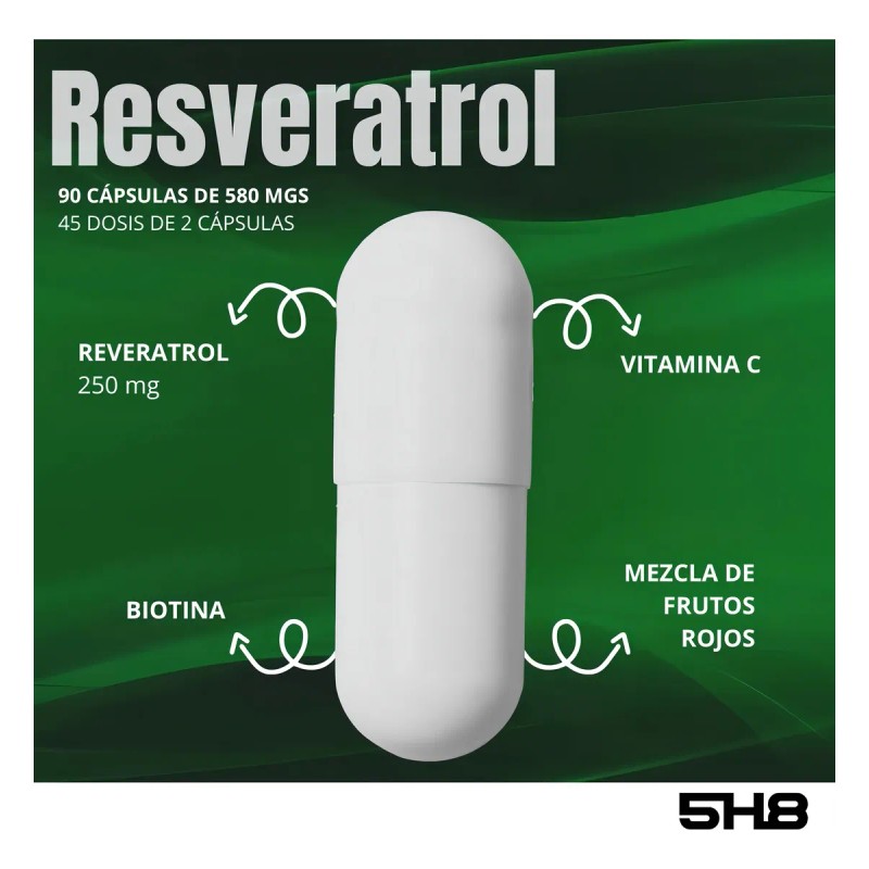 5H8 Resveratrol 250 mg con Frutos Rojos y Biotina: Tu Elixir Antioxidante para una Belleza y Vitalidad Duraderas
