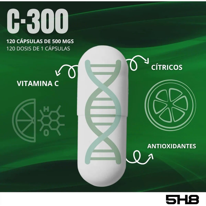 5h8 Vitamina C300mg Refuerzo Inmune 120 Caps Para 4 Meses Sabor Sin sabor