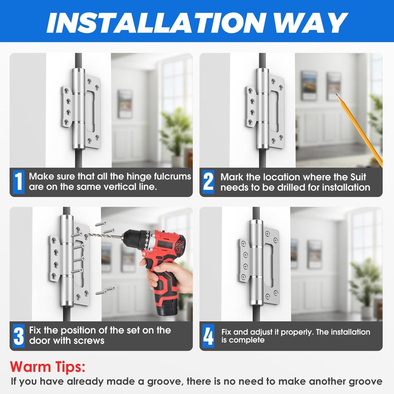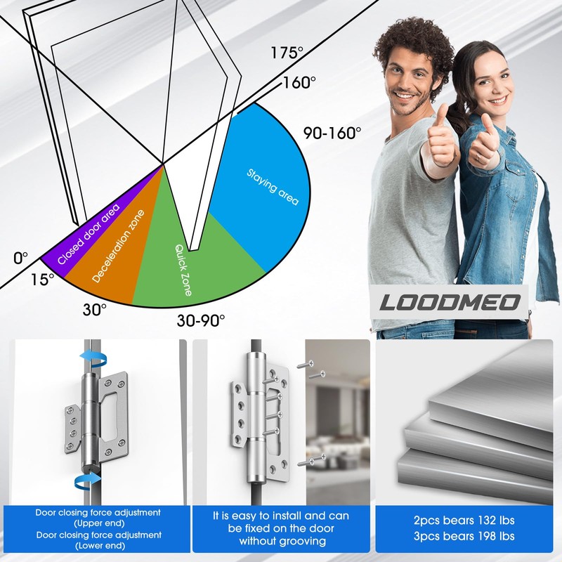• djusting silent closing: Easily adjust the closing speed and force through the hexagonal wrench, support from fast silent closing to soft buffer mode, suitable for high-demand scenes such as home, hospital, hotel, etc., and eliminate the problem of harsh noise of traditional hinges.