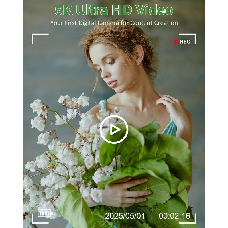 - 【5K UHD Resolution & 75MP Photo Capture】 This digital camera delivers stunning 5K UHD video and captures 75MP photos, making it a great choice for travel, family gatherings, and everyday use. Whether you're outdoors or relaxing at home, it brings every detail to life