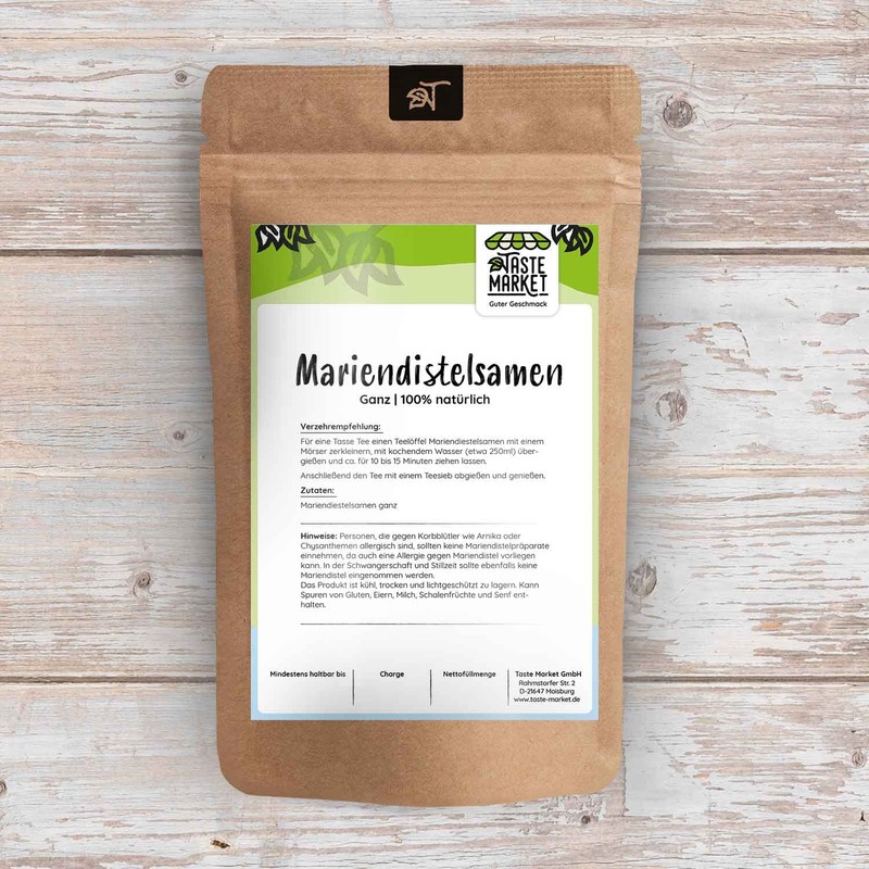 • The ladybird seeds are preferably used as tea or tinctures - but the seeds of the lady's diestles are also used in herbal liqueurs or digestive drinks. The Mariendiestel has a bitter and slightly sharp taste. Before the tea is prepared, the ladybird seeds should be crushed with a mortar. To ensure that the Mariendiestel maintains its properties as best as possible, the seeds are gently dried and freshly packed after ordering.