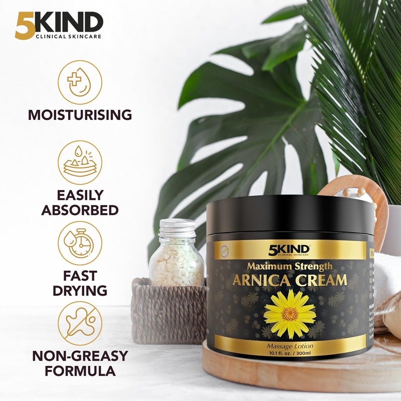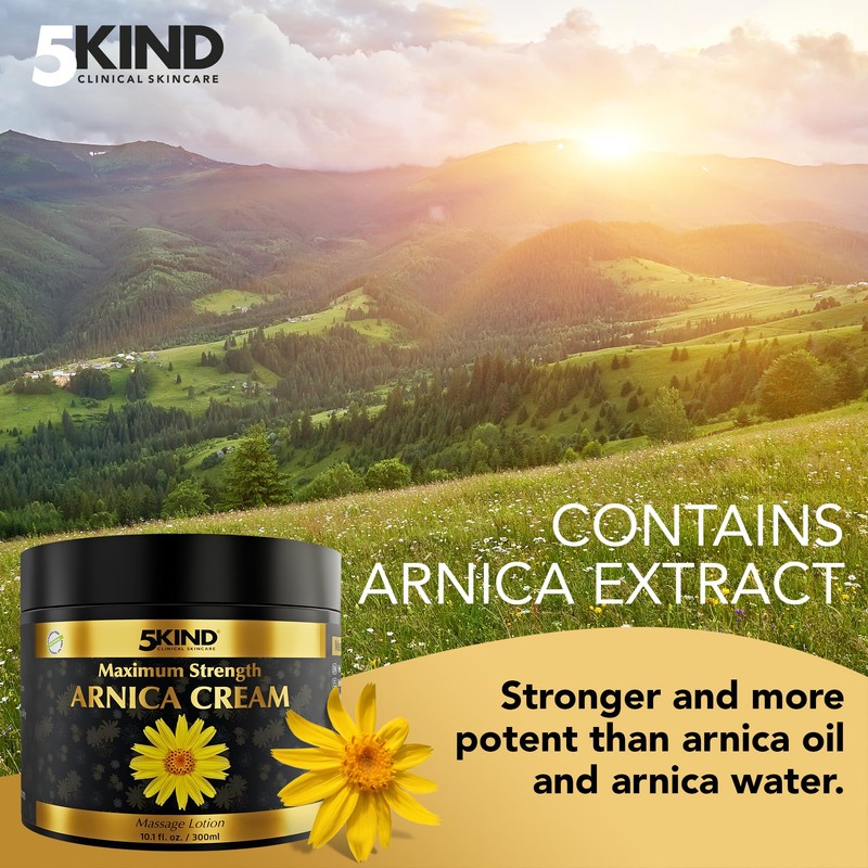 5kind clinical skincare 5kind Extra Strong Arnica Cream 10.1 Fl Oz - Natural Fast Acting Relief Arnica Cream for Bruising and Swelling - High Concentration Arnica Montana Extract Cream for Bruises - Arnica Bruise Cream.