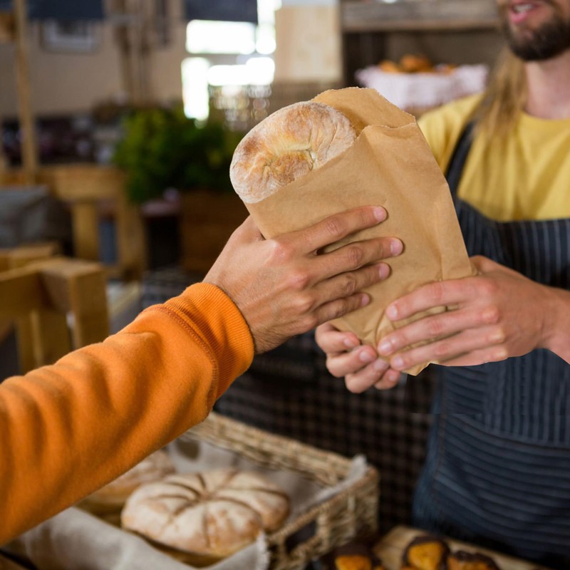 Perfect for packing cookies, bread, sandwiches, lunch, coffee beans, or other dry foods. The flat, folded design saves cabinet, drawer, and countertop space, while the disposable kraft material makes clean-up simple — just toss them in the trash when done.