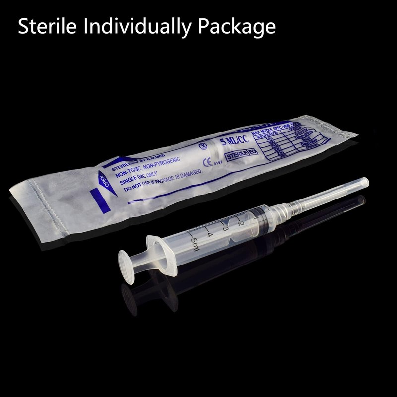 - This pack contains 100pack 5ml syringe with 22G 1.5 Inch needle ,each individually wrapped.