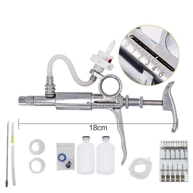 5ML Livestock Syringe Injection,Adjustable Continuous Injection Gun Semi-Automatic Syringe with 10 Needles for Horses, Cattle, Pigs, Sheep