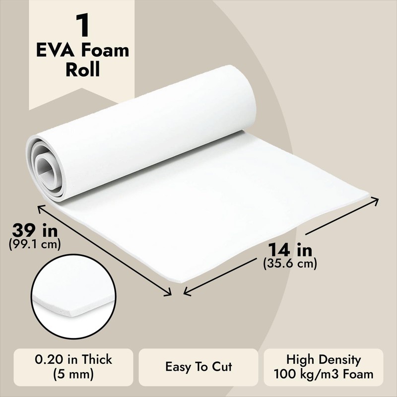 5mm EVA Foam Roll, White Foam Sheet for Cosplay Armor, Costumes, Party Decorations, High Density 100 kg/m3 (14x39 in)