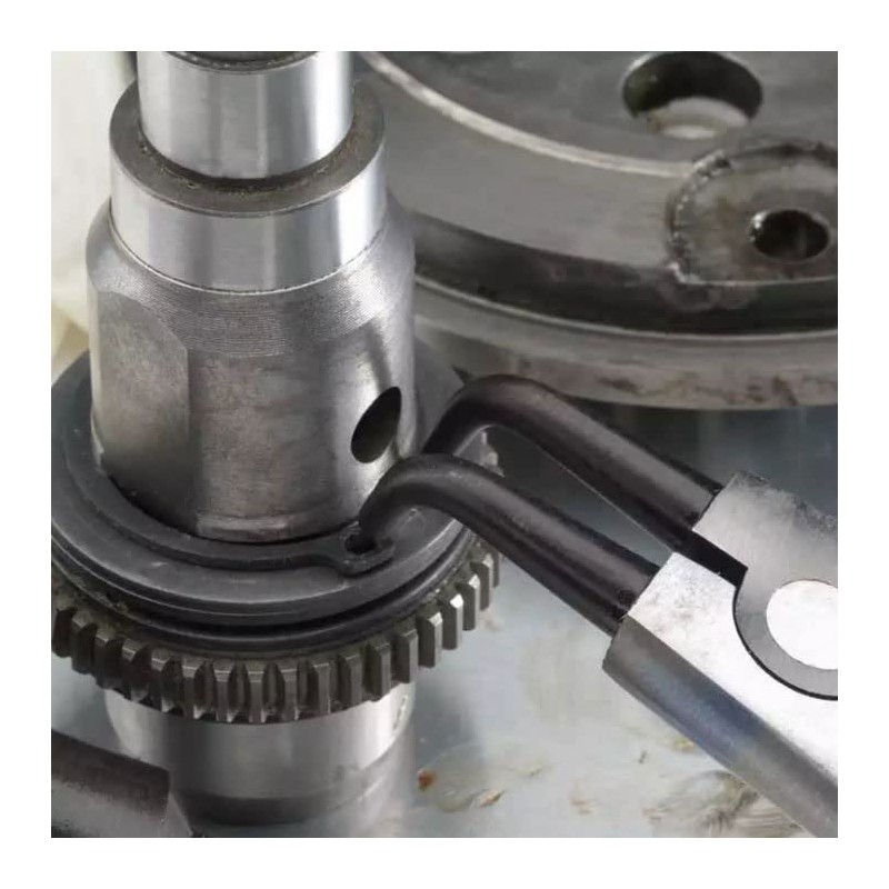 Once the mounting ring sits properly in the groove, part of its circumference protrudes to form a shoulder that secures the assemblies in the case or on the shaft. For this reason, snap rings are also called circlips because they hold components in an assembly.