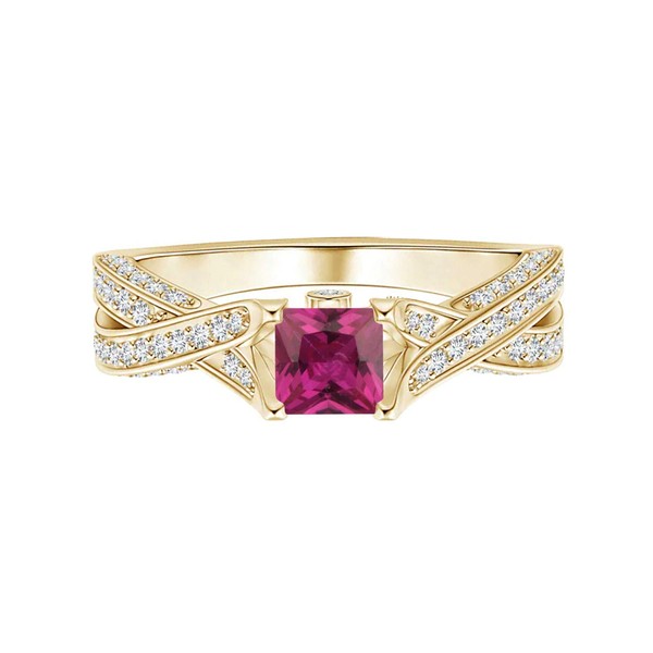 5mm Square Ruby CZ Gemstone 925 Sterling Silver Solitaire Crossover Engagement Ring Jewelry, Gemstone, Rainbow