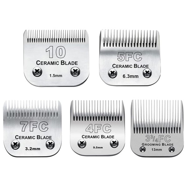5PACK Dog Grooming Clipper Replacement Blades Compatible with Andis Pet Clipper/Oster A5/Wahl KM Series Dog Clipper with Ceramic Blade & Stainless Steel Blade (#10+5FC+7FC+3FC+4FC)
