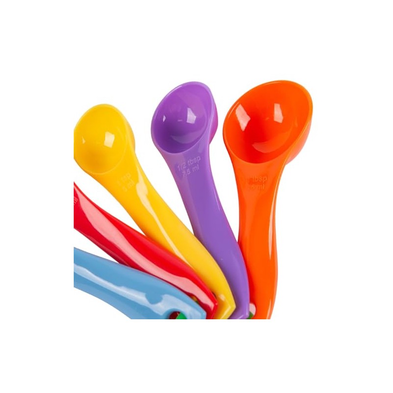 - These measuring spoons are manufactured from durable heat resistant food grade hard PP plastic which are colour coded with easy to read markings.