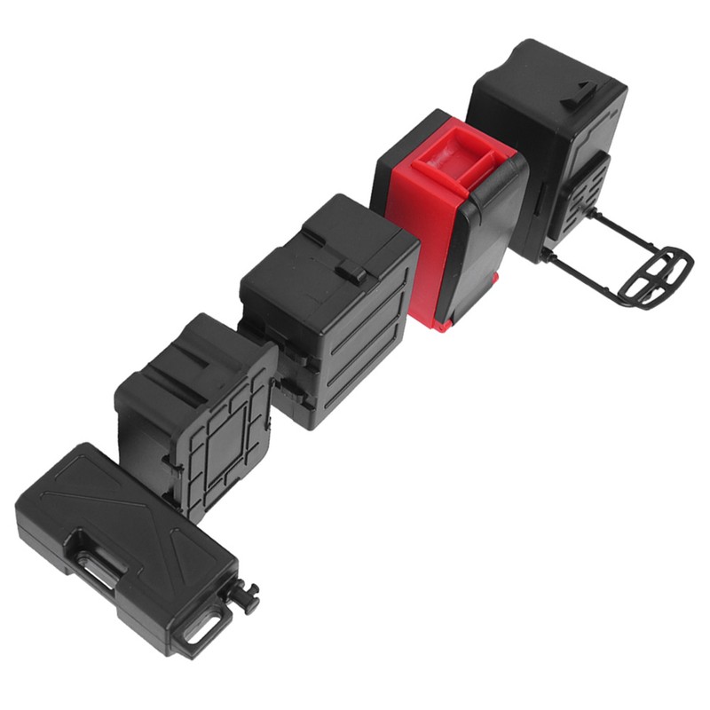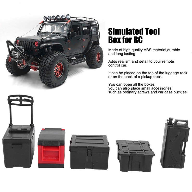 1、Made of high quality ABS material, durable and long lasting. 2、Adds realism and detail to your remote control car. 3、It can be placed on the top of the luggage rack or on the back of a pickup truck. 4、You can open all the boxes, and you can also place small accessories such as ordinary screws and car case buckles. 5、Suitable for 1/10 simulated climbing car TRX4 SCX10.