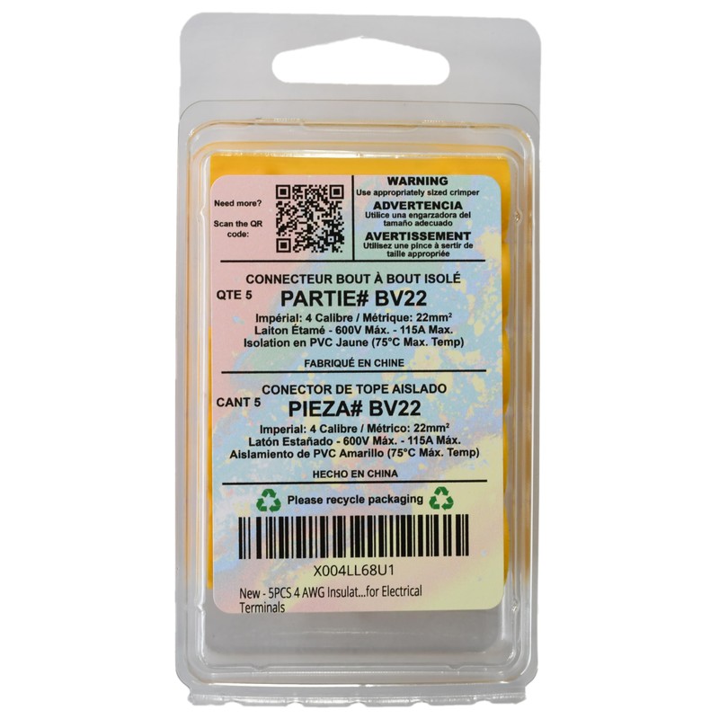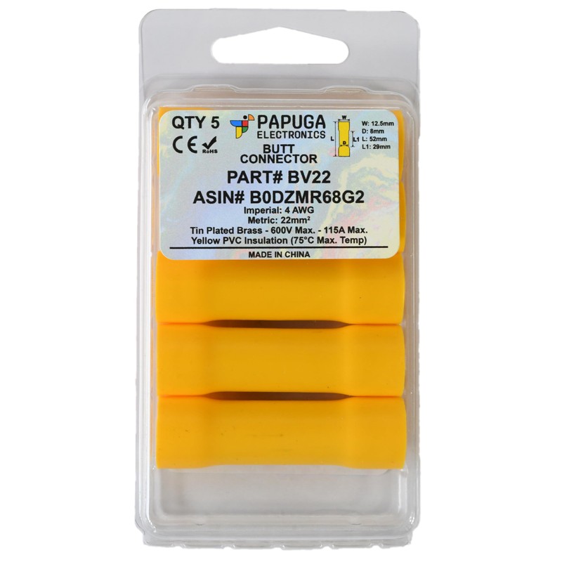 5PCS 4 AWG 115A Insulated Butt Crimp Connector 600V CE (4 AWG)
