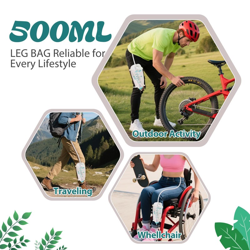 - 【500ml Capacity, 5-Pack Set】This set includes five urine leg bags, each capable of holding 500ml, ensuring reliable collection throughout the day.