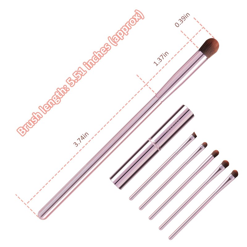 5Pcs Eyeshadow Brush Set, Premium Eyebrow Brush Eyeshadow Brush Concealer Brush Eye Blending Brush Eye Smudge Brush with Case, Pink Makeup Brushes for Travel